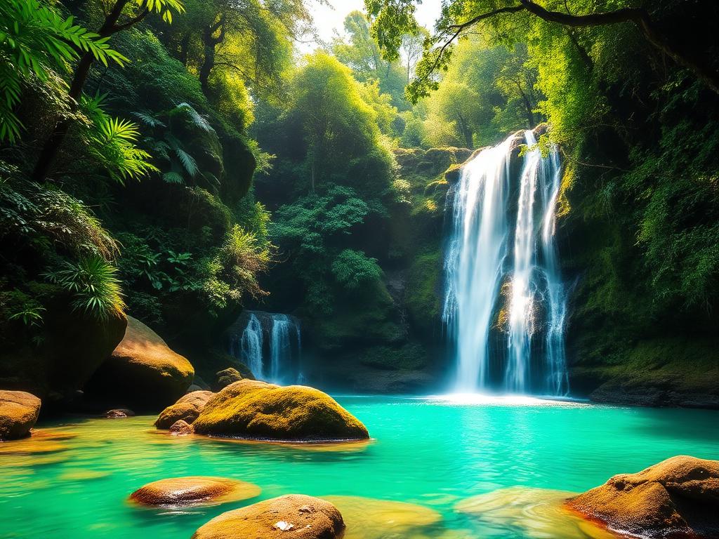 Explore Sendang Gile & Tiu Kelep Waterfalls surrounded by lush tropical forests.